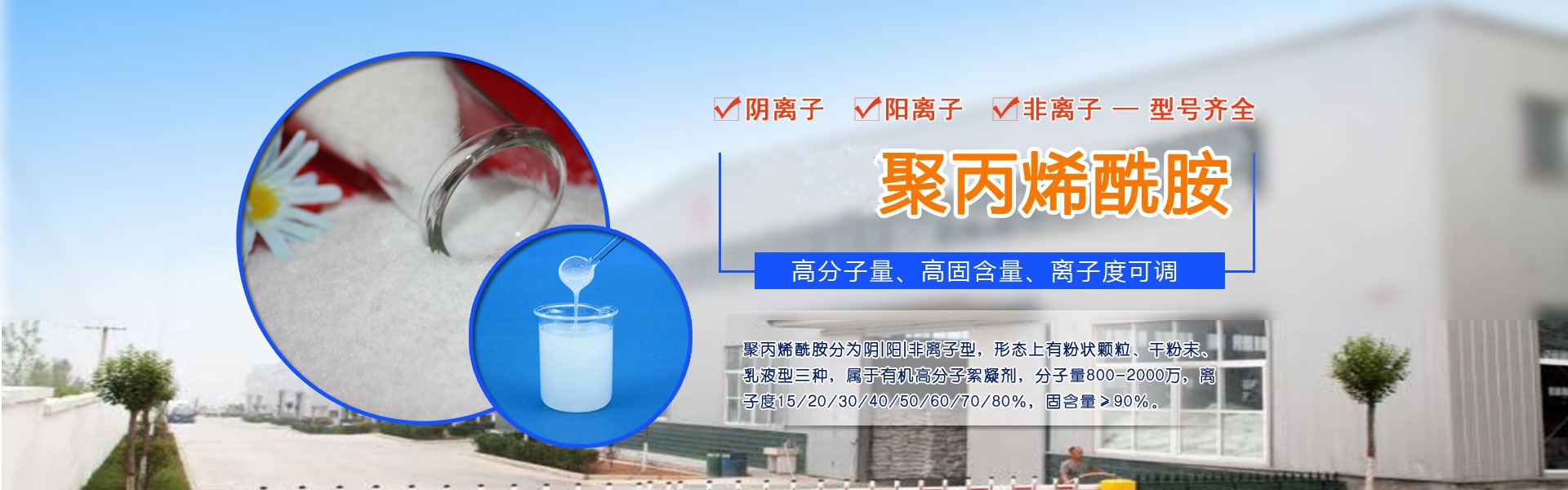 公司主要生產(chǎn)聚合氯化鋁,聚丙烯酰胺為主